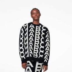 בסגנון ליום או לחושך, סוודר צמר גדול מימדים זה מוסיף תככים מיידיים עם דוגמת מונוגרמה על פני השטח שנשלפה מקולקציית סתיו 2021. חנות מארק ג’ייקובס המונוגרמה צווארון גדול במיוחד